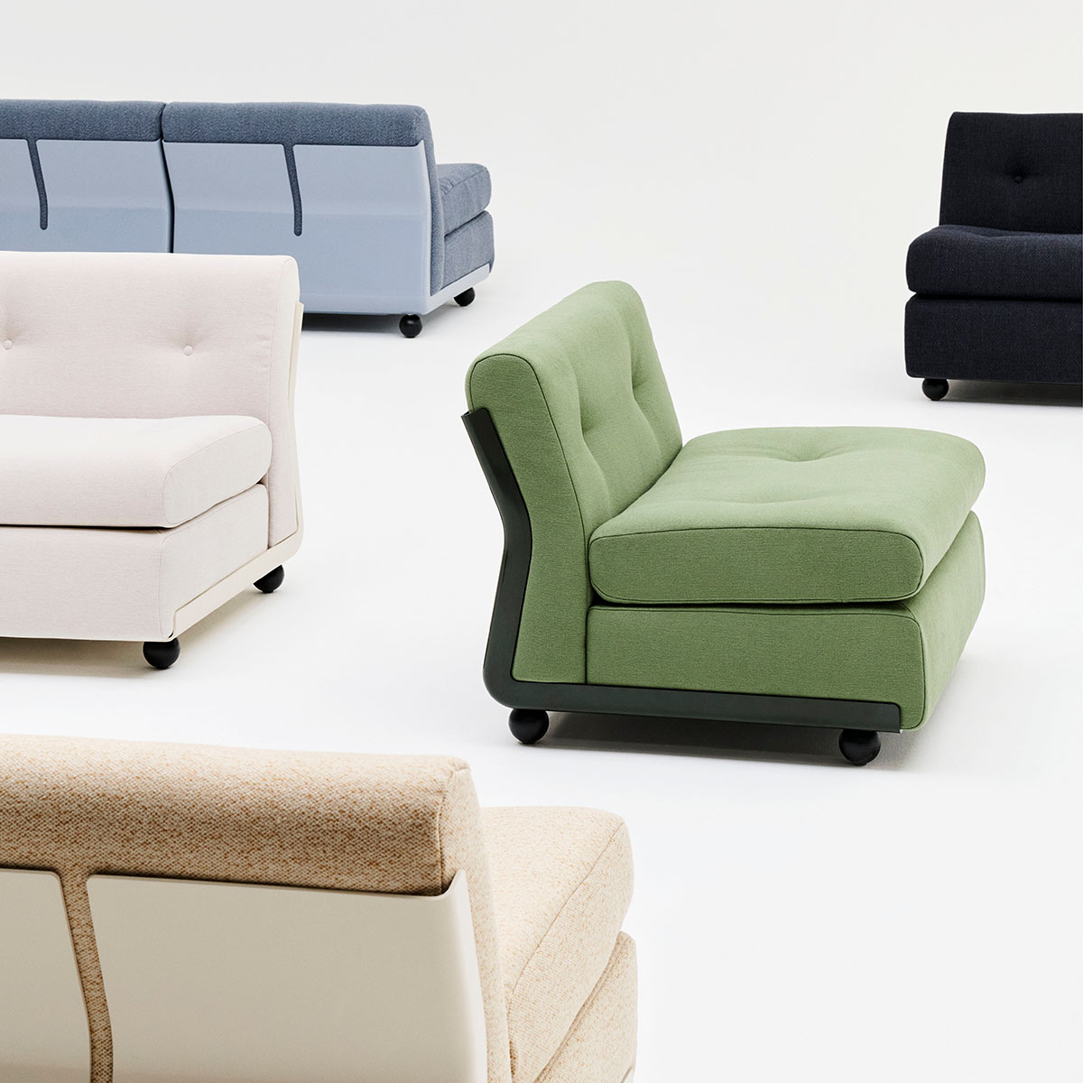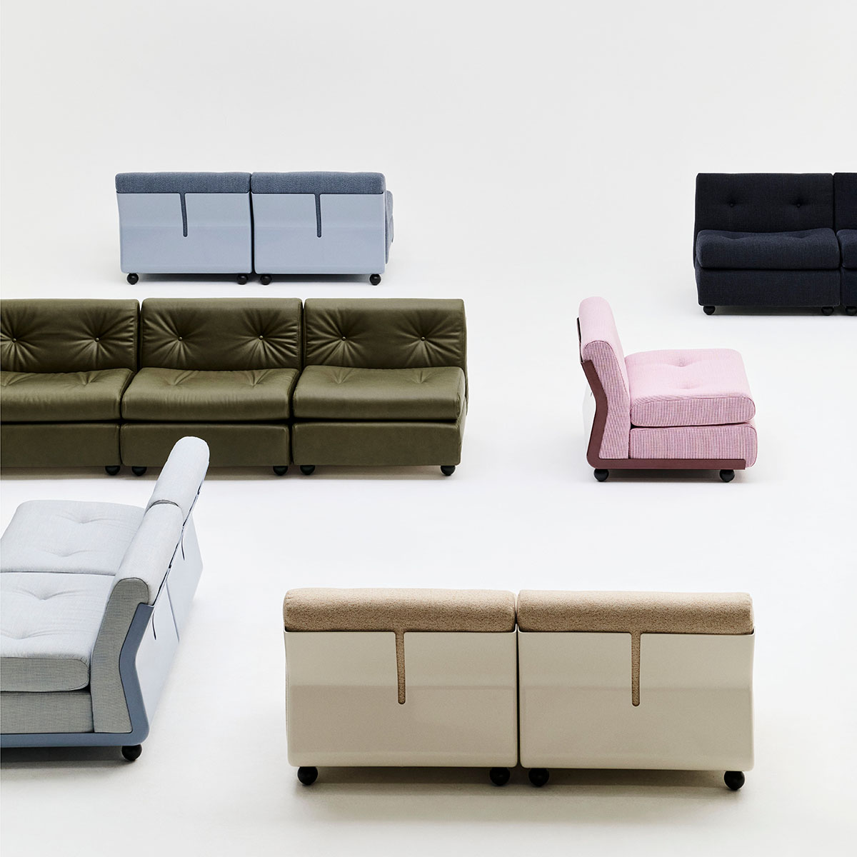 Das ursprünglich 1966 von Mario Bellini entworfene und von HAY neu aufgelegte Sofa Amanta verkörpert die Essenz innovativen italienischen Designs der Mitte des 20. Jahrhunderts. Als modulare Sitzlösung mit skulpturalem Design und organischer, niedriger Silhouette besticht Amanta bis heute durch zeitlose Genialität. Die modularen Elemente lassen sich einzeln oder kombiniert nutzen, und das flexible Design des Sofas zeugt von der interdisziplinären Expertise des Designers in Form und Funktion. Die mit architektonischer Präzision aus mindestens 99 % recyceltem ABS gefertigte Schale wird durch zu 94 % aus Biomasse hergestellte Schaumstoffkissen ergänzt, die ergonomischen Halt bieten. Alle Komponenten sind zur Demontage konzipiert. Amantas zeitlose Ästhetik und die Anpassungsfähigkeit an verschiedene Raumkonzepte machen es zu einer vielseitigen Wahl für unterschiedlichste private und öffentliche Bereiche. Erhältlich in verschiedenen Schalenfarben mit einer Vielzahl von Stoff- und Lederbezügen, als Einzelmodul oder in vorkonfigurierten 2-, 3- oder 4-Sitzer-Varianten.