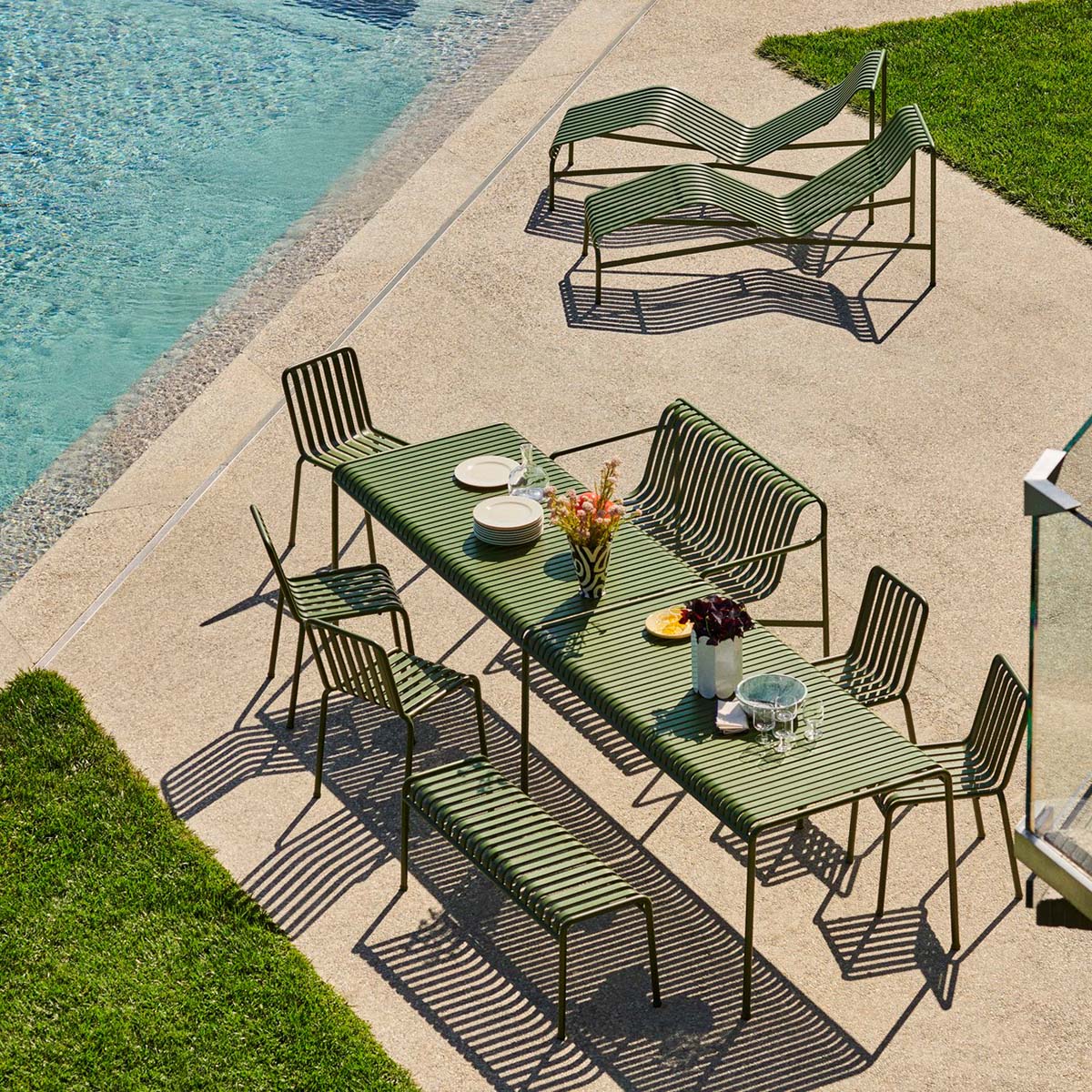 Die vom französischen Duo Ronan und Erwan Bouroullec entworfene Palissade Chaise Longue verfügt über einen geschwungenen Rahmen, der sich Ihrem Körper anpasst und eine entspannte und bequeme Liegeposition schafft. Das elegante Design wird durch die gleiche symmetrische Geometrie und grafische Ausdrucksweise wie der Rest der Palissade-Serie vereint, die entwickelt wurde, um die gleiche visuelle Einfachheit zu reproduzieren, die es ermöglicht, sich mühelos in eine natürliche Landschaft oder eine städtische Umgebung zu integrieren. Der pulverbeschichtete Stahl wurde speziell für den Außenbereich entwickelt und verfügt über eine schützende Outdoor-Grundierung für optimale Haltbarkeit und Widerstandsfähigkeit: Dadurch hält er länger und wird mit den Jahren immer schöner. Die Chaise Longue ist in ausgewählten Farben erhältlich und eignet sich ideal für Terrassen, Balkone, Gärten und öffentliche Bereiche.