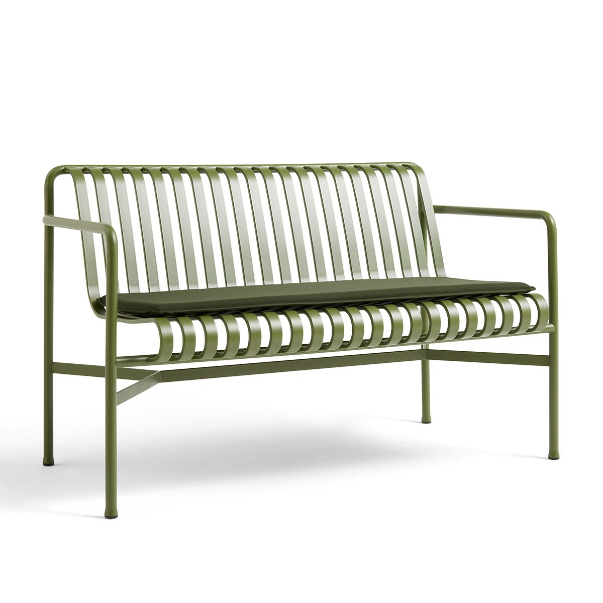 Das Palissade-Steppkissen erweitert die Palissade-Kollektion um zusätzlichen Komfort und Funktionalität und ist passgenau für die Sitzfläche geformt. Es verfügt über eine rutschfeste Unterseite und wird oben und unten mit Klettverschluss befestigt. Die Kissen sind aus wasserabweisendem Material gefertigt, in verschiedenen Farben für Sessel, Sofa und Chaiselongue erhältlich und ganzjährig verwendbar.