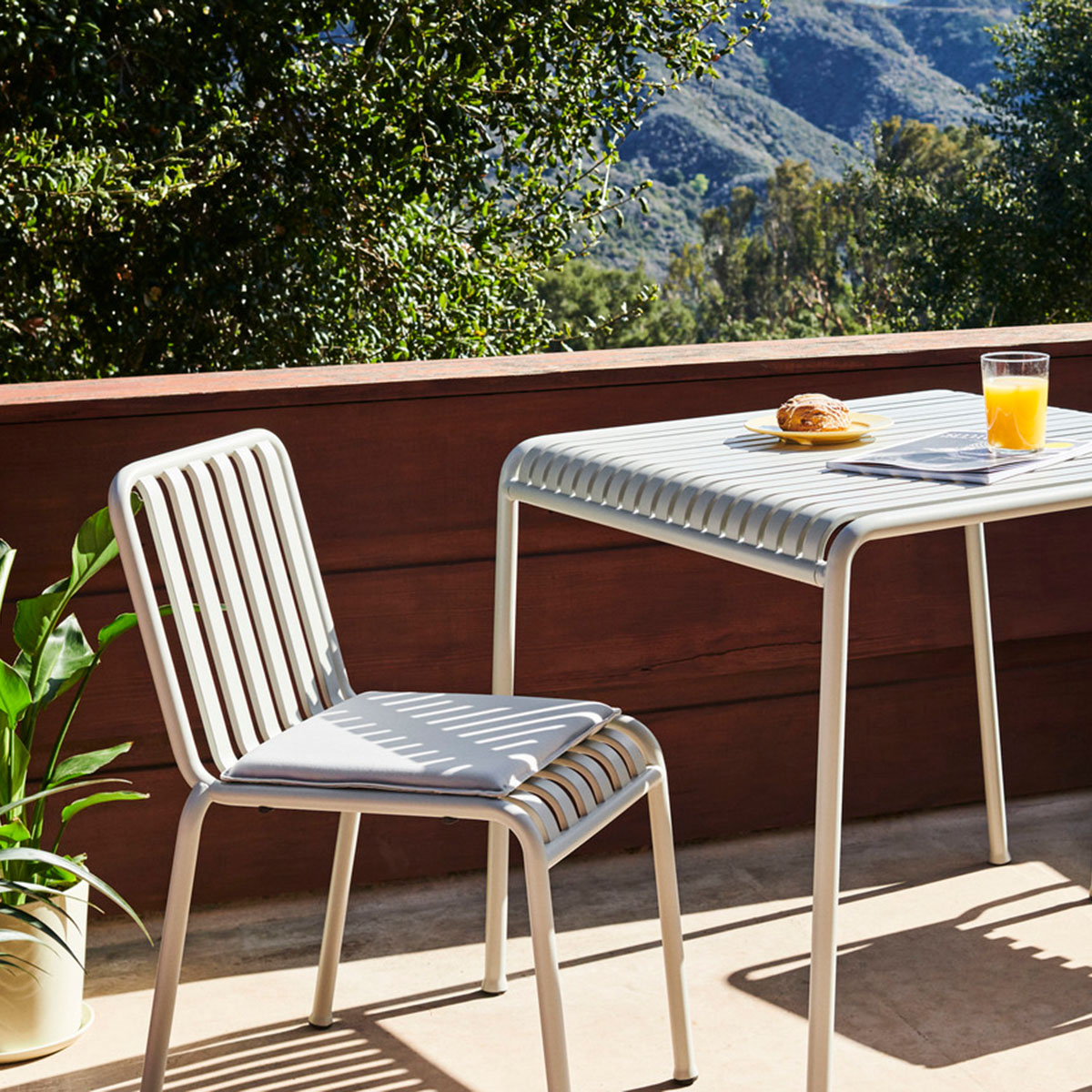 Das Palissade-Kissen ergänzt die Palissade-Kollektion um zusätzlichen Komfort und Funktionalität und ist speziell für die perfekte Passform auf Stuhl- oder Sofasitzen geformt. Das dünne, leicht gepolsterte Kissen verfügt über eine rutschfeste Unterseite, die für sicheren Halt sorgt. Die Kissen sind aus wasserabweisendem Material gefertigt, in verschiedenen Farben erhältlich und ganzjährig verwendbar. Für Palissade Chair und Palissade Arm Chair.