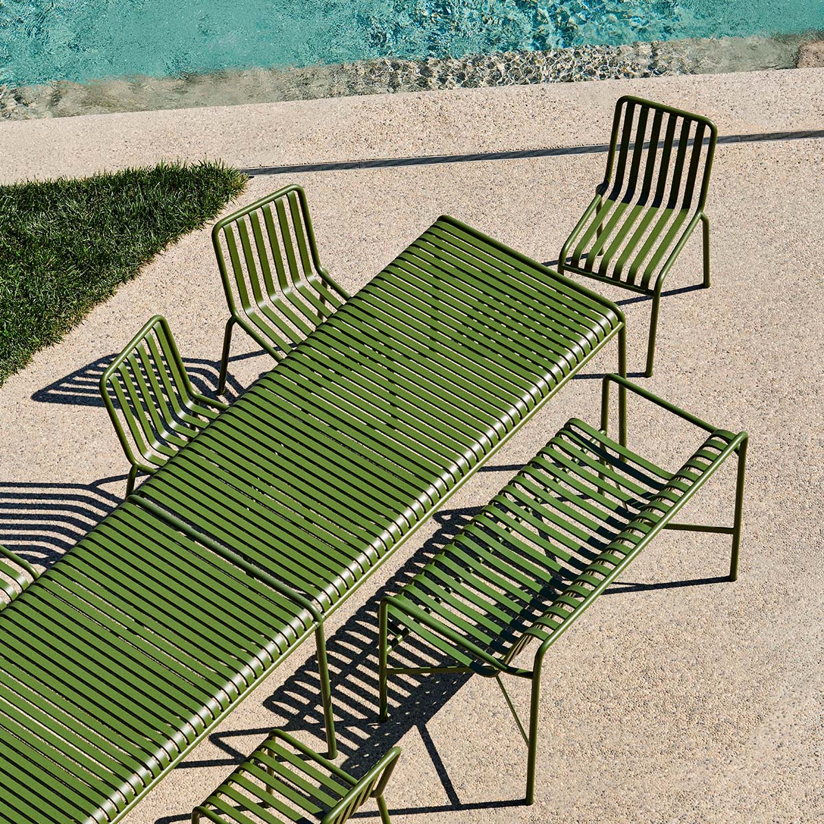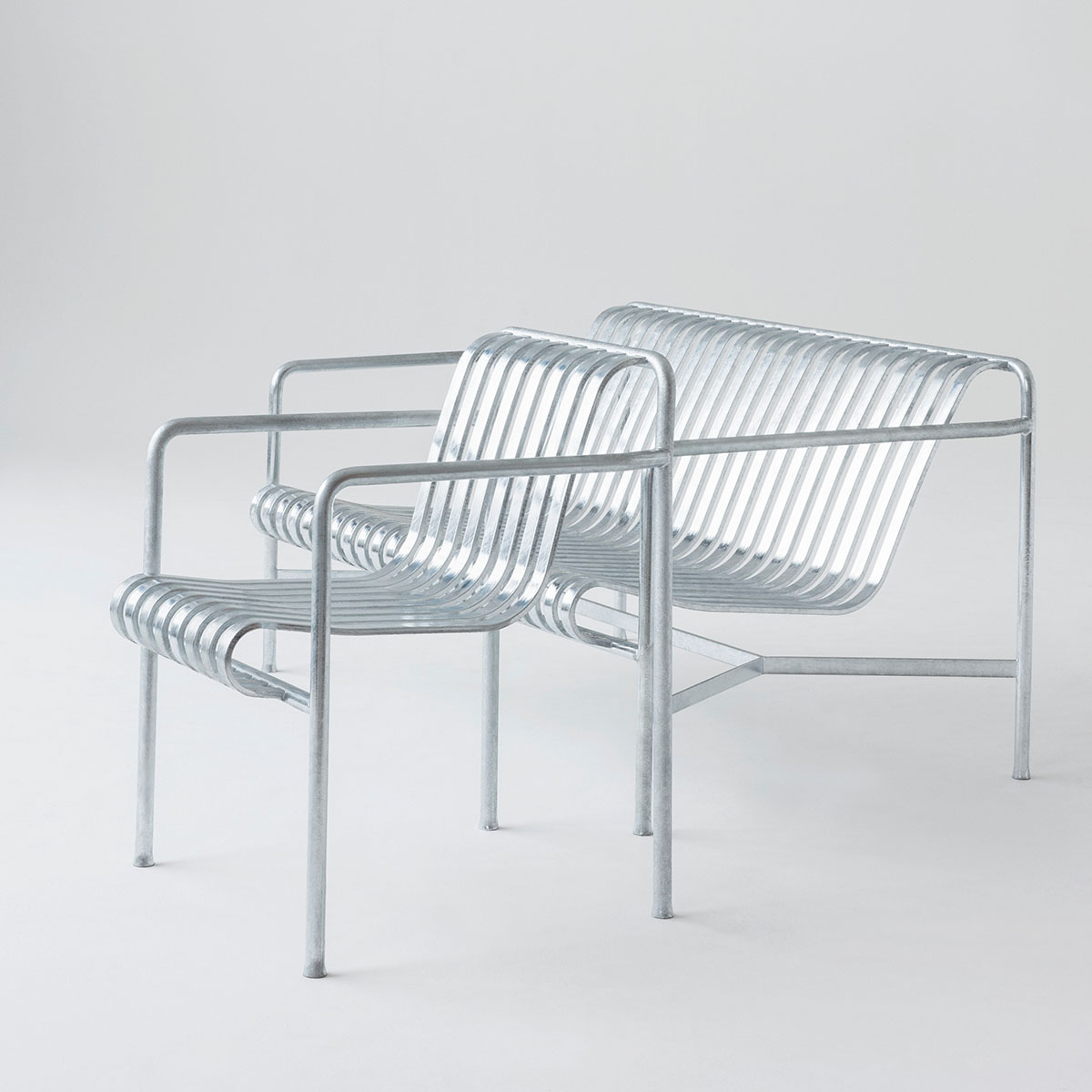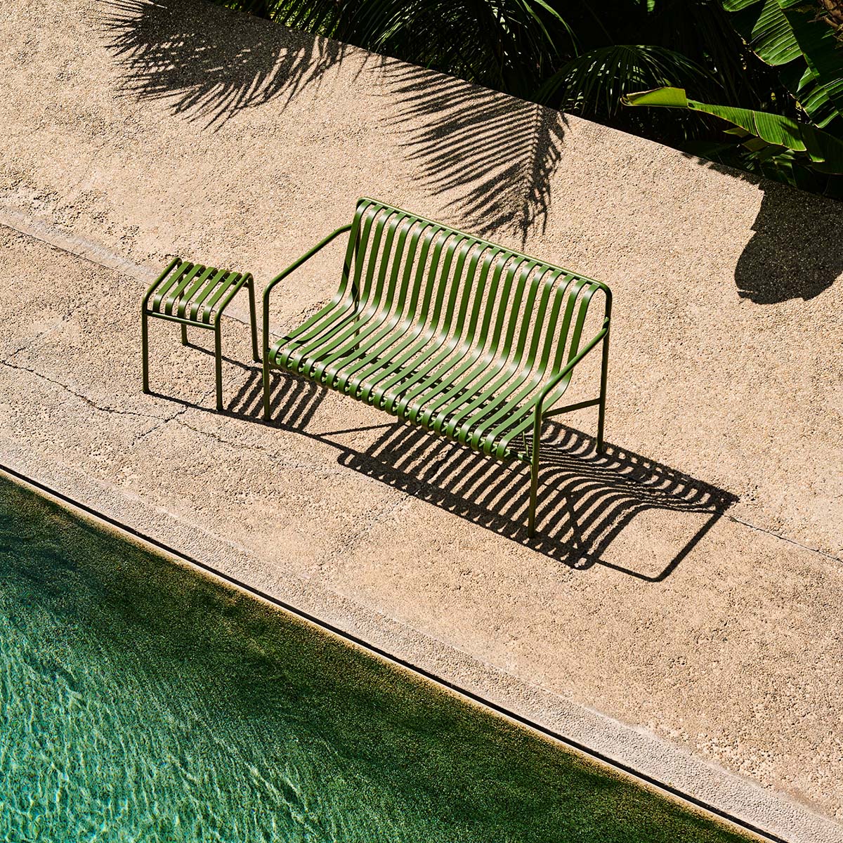 Die Palissade Außenmöbel-Kollektion wurde für Hay von Ronan und Erwan Bouroullec unter der Prämisse einer vielfältigen Anwendbarkeit entworfen: Im Café, im Restaurant, im Garten, auf der Terrasse oder auf dem Balkon. Die Kollektion aus Hockern, Bänken, Stühlen und Tischen umfasst 13 verschiedene Elemente, die nicht nur in ihrer grafischen Form, sondern auch im Hinblick auf ihre funktionalen Charakteristika vereint sind: Robust ohne klobig zu wirken, elegant ohne fragil zu sein.