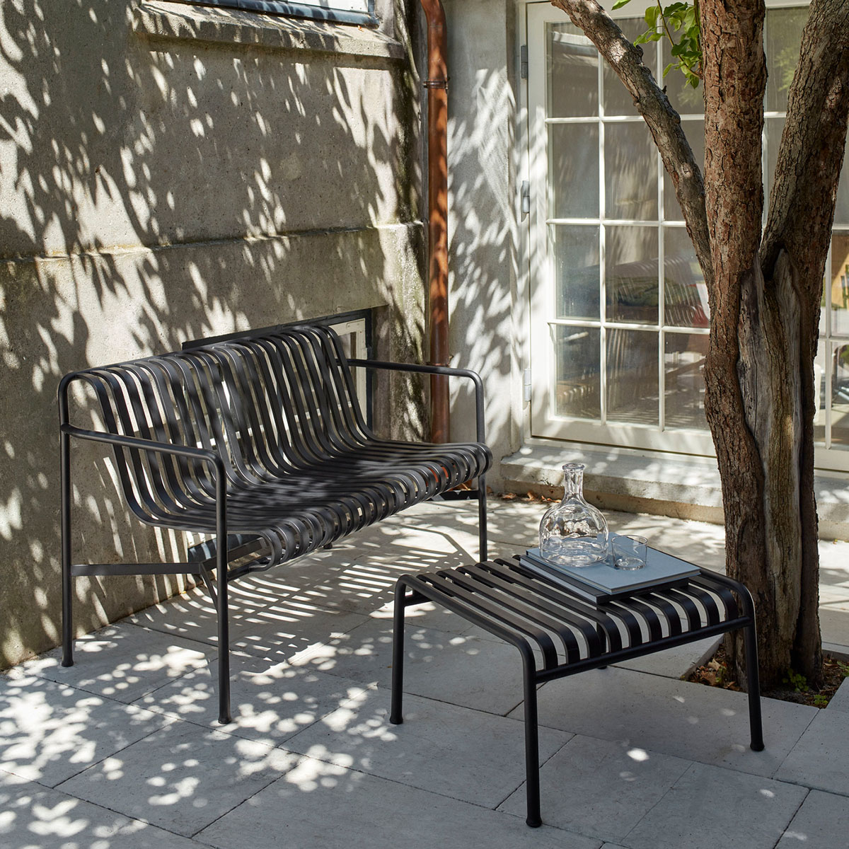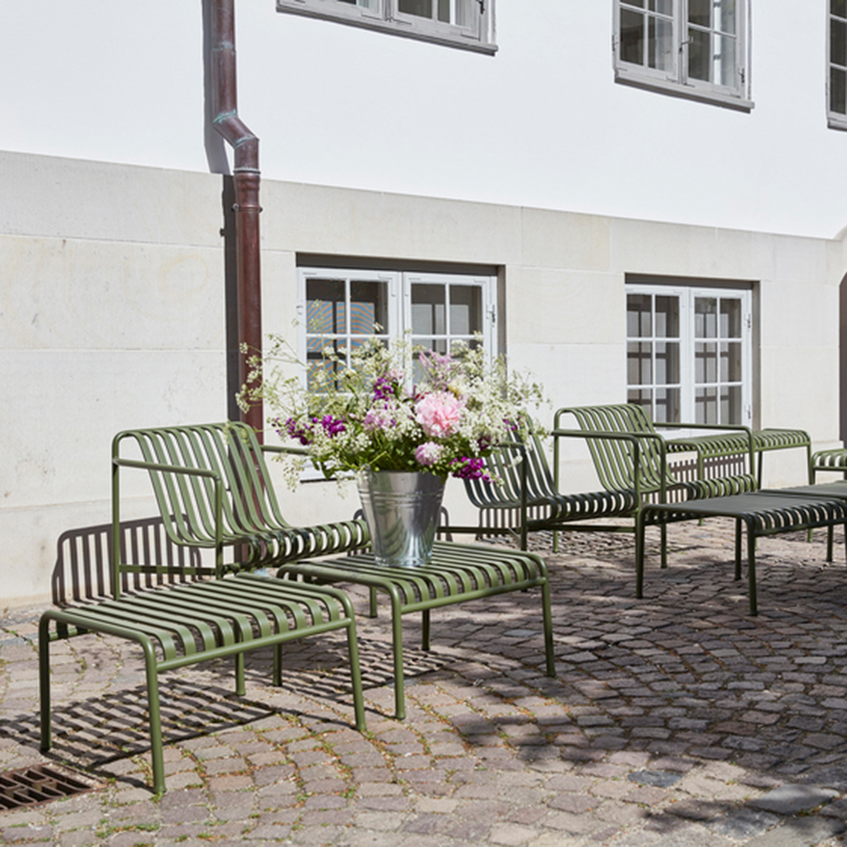 Die Palissade Außenmöbel-Kollektion wurde für Hay von Ronan und Erwan Bouroullec unter der Prämisse einer vielfältigen Anwendbarkeit entworfen: Im Café, im Restaurant, im Garten, auf der Terrasse oder auf dem Balkon. Die Kollektion aus Hockern, Bänken, Stühlen und Tischen umfasst 13 verschiedene Elemente, die nicht nur in ihrer grafischen Form, sondern auch im Hinblick auf ihre funktionalen Charakteristika vereint sind: Robust ohne klobig zu wirken, elegant ohne fragil zu sein.